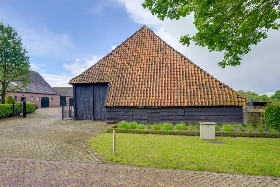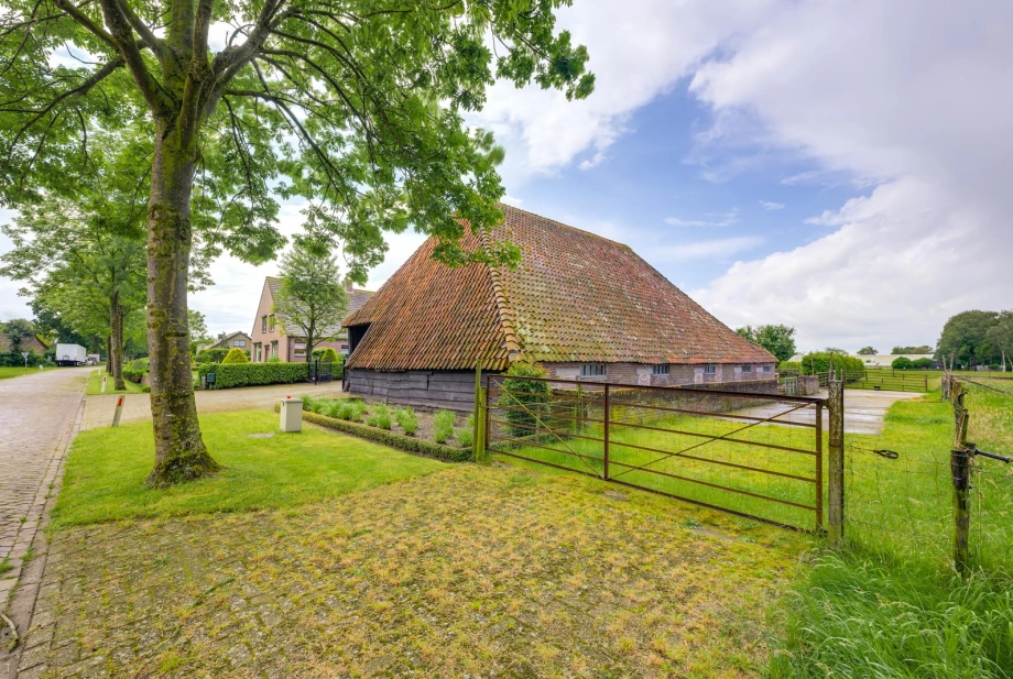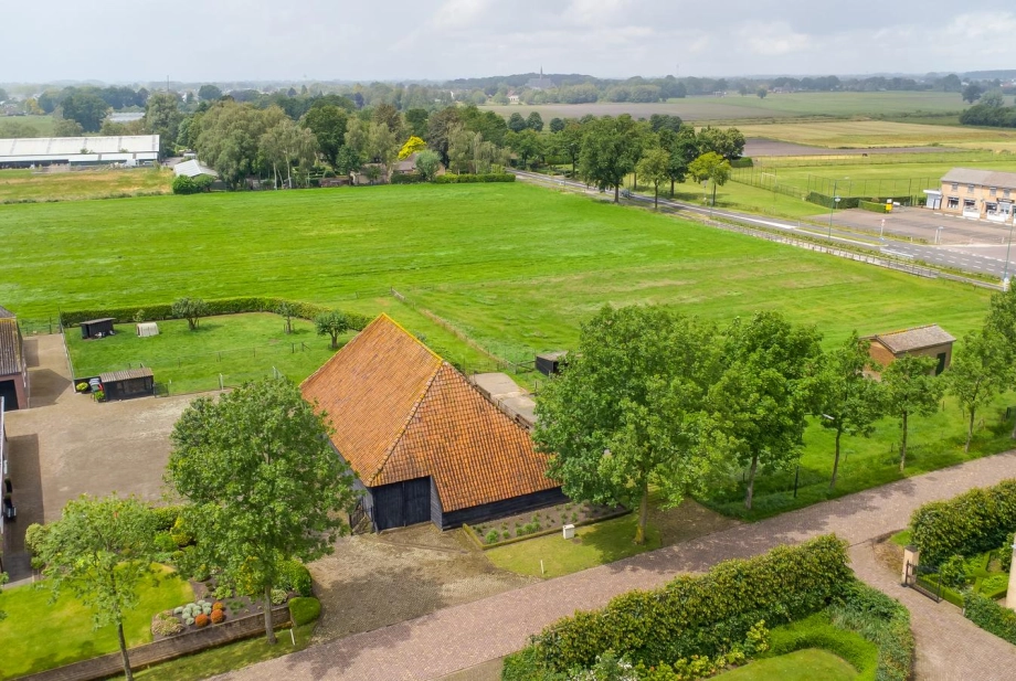 - De oprit naar de Vlaamse schuur bevindt zich aan de rechterzijde;