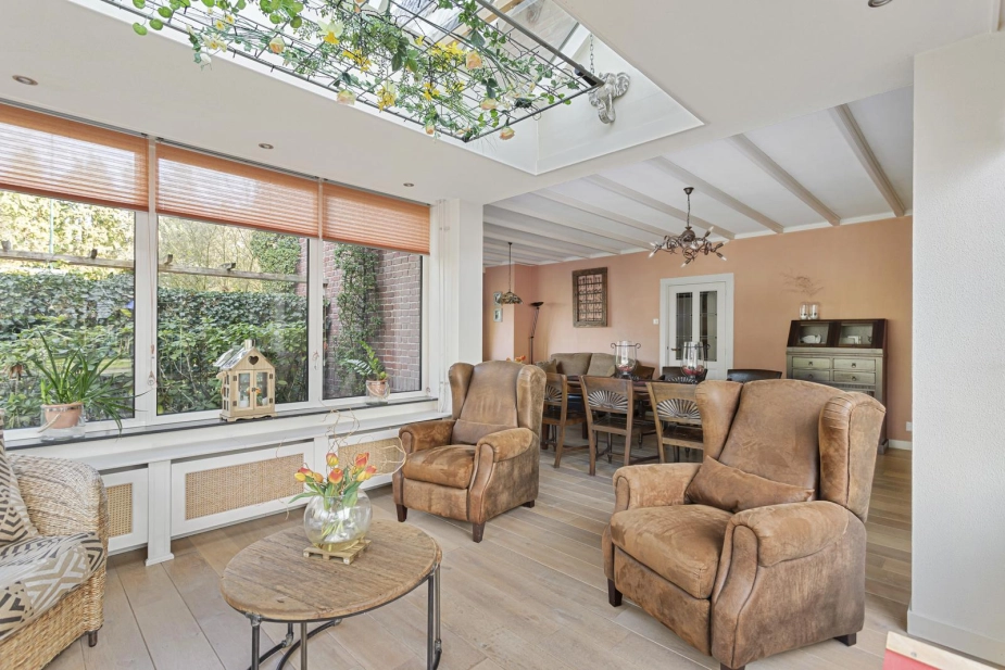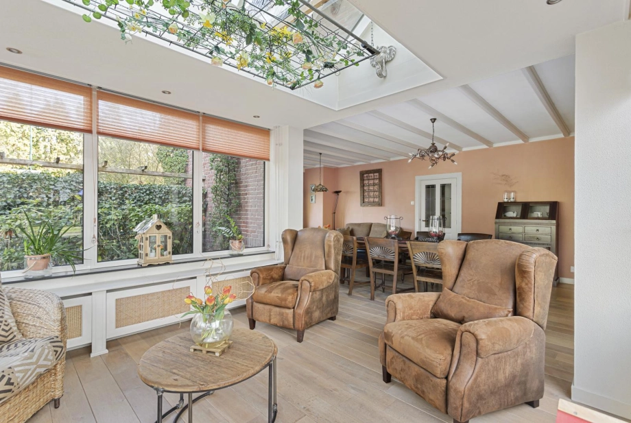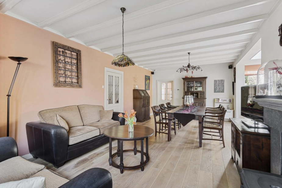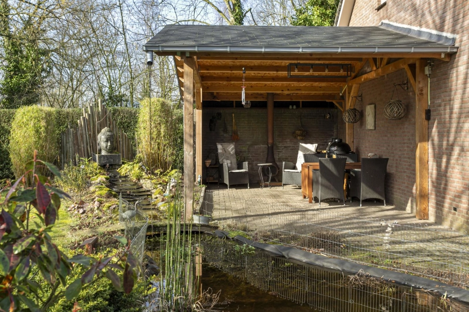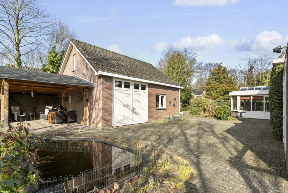 DEELNEMER NVM OPEN HUIZEN DAG ZATERDAG 28 MAART VAN 11.00-15.00 UUR. Niet vaak tref je een woning waar ruimte, privacy en comfort zo vanzelfsprekend samenkomen. Een plek waar je direct ervaart dat hier met plezier is gewoond en geleefd. Achter het sierhek en de royale oprit staat dit vrijstaande woonhuis op een perceel van 1.160 m². Parkeren doe je op eigen terrein, zowel vóór als achter de poort. De ruime schuur met dubbele garage en vliering biedt daarnaast volop mogelijkheden voor hobby, opslag of werk aan huis. Binnen ervaar je een fijne balans tussen sfeer en functionaliteit, met een woonoppervlakte van maar liefst 171 m². De indeling is doordacht en verrassend veelzijdig, waardoor wonen, werken en ontspannen hier moeiteloos samengaan. Dankzij de aparte entree is een kantoor of praktijk aan huis perfect te combineren met het privéleven. En dan de tuin…Een groene oase met volwassen bomen, een vijver, meerdere terrassen en een veranda waar je tot in de avond geniet. Dagelijks laten eekhoorntjes zich hier zien en ervaar je het echte buitenleven, gewoon in je eigen achtertuin! De ligging maakt het geheel compleet: op circa 10 minuten fietsen van het Pagnevaartbos en op korte afstand van de dorpskern met winkels, scholen en voorzieningen binnen handbereik. Hier woon je vrij, maar nooit afgelegen!