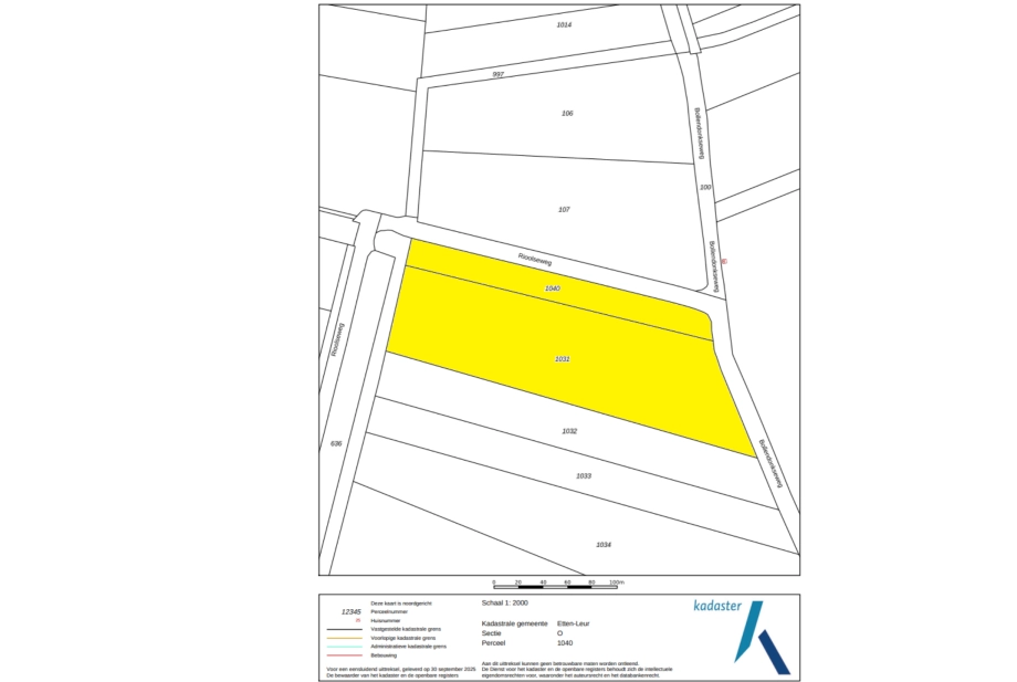 - Perceel O 1040: € 13,02 per jaar, met eindjaar 2032.